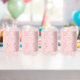 Verre Canette un design abstrait rose et blanc sur un fond blanc