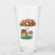 Petite chouette grincheuse se cachant sous un champignon comme un parapluie loin de la pluie.