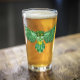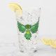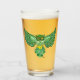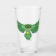 Chouette à noeud celtique vert avec ouverture d'envergure dans un arrière-plan de turquoise