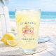 Add a touch of seaside charm to your drinkware with this elegant coastal glass tumbler, featuring a sweet watercolor pink crab wearing a straw sunhat. Designed in a soft, airy palette of blush pinks, sandy neutrals, and classic navy blue typography, this piece captures the relaxed beauty of beach house living with a refined cottagecore feel.