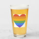 Cette oeuvre présente un coeur rayé arc-en-ciel coloré.