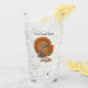 Ce caisson en verre pour boissons a une dinde mâle colorée avec une queue étouffée debout dans un tas de feuilles de couleur automne. Customisez votre texte avec le modèle.