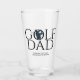 Verre à pinte cool tendance avec un en-tête "GOLF DAD" proéminent en typographie minimaliste et une silhouette dorée intégrée au centre du texte. Zone de texte personnalisable sous en-tête. Idée cadeau parfaite pour votre golfeur préféré. Idéal pour Noël, Fête des Pères, anniversaire ou tout autre jour.