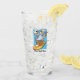 A funny polar bear cartoon on a beer glass. Use "Personalize this template" to add your own text and create a unique, customized gift. A glass featuring an ice cool polar bear enjoying a cold drink and a cooling hand fan while riding a bright yellow surf board. A chilled out design for the summer.