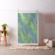 Une vision moderne du milieu du siècle moderne : des formes atomiques qui se chevauchent et qui recouvrent un crosshatch numérique dans des verts vifs et des bleus frais.