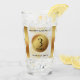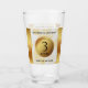 Toast 3e anniversaire de mariage en cuir avec ce verre à pinte commémoratif! Un élégant lettrage noir avec des confettis hexagonaux dorés sur un luxueux arrière - plan en cuir blanc bordé de feuille d'or apporte une touche inoubliable pour cette occasion spéciale et cette étape importante. Customiser avec les noms et dates du mariage du couple. Reverse affiche un design identique. Design © W.H. Sim, Tous droits réservés. Voir plus sur zazzle.com/expressionsoccasions