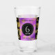 Toast 6th améthyste mariage anniversaire avec ce verre à pinte commémoratif! Le lettrage noir et blanc élégant avec des confettis hexagonés dorés sur des arrière - plans améthystes stylisés violet et noirs ajoute une touche mémorable pour cette occasion spéciale et jalon. Personnalisez avec le nom du couple et la date du mariage. Reverse affiche un design identique. Design © W.H. Sim, Tous droits réservés. Voir plus sur zazzle.com/expressionsoccasions