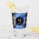 Toast 9th lapis lazuli mariage anniversaire avec ce verre à pinte commémoratif! Des lettres blanches élégantes avec des confettis hexagonaux patinés en pyrite sur des arrière - plans tachetés, bleu azur et noir ajoutent une touche mémorable à cette occasion spéciale et à cette étape importante. Personnalisez avec le nom du couple et la date du mariage. Reverse affiche un design identique. Design © W.H. Sim, Tous droits réservés. Voir plus sur zazzle.com/expressionsoccasions