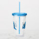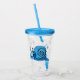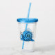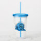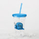 Cette rondelle acrylique avec paille et couvercle a un mignon escargot souriant avec les yeux blancs et une coquille bleue bordée de noir.