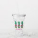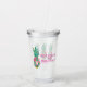 Ce touffle acrylique personnalisé preppy présente de mignons ananas tropicaux verts et roses. Personnalisez avec votre choix de nom et de texte spécial à l'avant et à l'arrière. Amusant pour des sacs cadeaux personnalisés et des fournitures de fête.