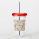 Un gobelet en acrylique avec un motif mignon de style nordique. Pins hivernaux, ours, rennes et écureuils. Couleur marron clair.