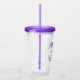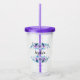 Tumbler acrylique avec un design de courroie florale bleu et violet romantique et nom ou monogramme personnalisable.