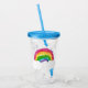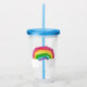 Copo de acrílico com ilustração de arco-íris e nuvens.