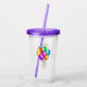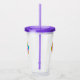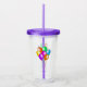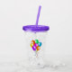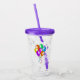 Cette rondelle acrylique avec paille et couvercle a un tas de ballons éclatants en plusieurs couleurs attachés ensemble avec des serpentins assortis sur l'avant et le dos.