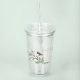 Bird birthday collection featuring a brown bird on a tree branch amidst leaves and bright blue flowers