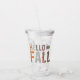 Ce design sur le thème de l'automne accueille chaleureusement la saison d'automne avec l'expression "Hello Fall". Les mots sont arrangés dans une disposition simple mais visuellement attrayante, avec "Hello" placé au-dessus de "Fall". Chaque lettre de l'expression est présentée dans une police grasse et bloquée, avec une texture légèrement désespérée, lui donnant un look rustique et patiné qui complète le thème automnal.