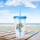 Une tortue de mer charmante et colorée orne le tumbler de ces enfants, avec des illustrations de bulles ludiques, idéal pour personnaliser avec un nom.