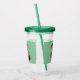 Cette boisson acrylique tumbler avec paille et couvercle a un drôle de couple de chat. La femelle rayée jaune partage ses rats de son panier de bois avec le chat mâle brun sur un arrière - plan vert menthe.