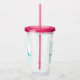 Tumbler acrylique personnalisé avec un motif rayé bleu clair et blanc associé à un motif à pois bleu et rose. Sur le dessus se trouve un mignon cupcake bleu avec glaçage rose et un visage kawaii souriant. Une cerise sur le dessus a aussi un joli visage heureux. Une étoile filante vole en l'air