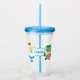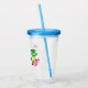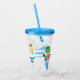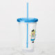 Coupes à tumbler de mignonne Alice au pays des merveilles pour un anniversaire à thème de livre. La petite fille Alice dans sa robe bleue et le chapeau Mad s'assoient sur une jolie bande jaune bleue. Customisez cette faveur fantaisiste avec votre propre texte.