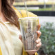 Élégant Script Bridesmaid Tumbler. Comprend une bague de texture en métal argenté et une police de caractères stylisée, personnalisée avec le nom de la servante.