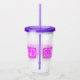 Les mots WEEK-END ENTRE FILLES inscrits en rose néon brillant sur un gobelet à boire en plastique.