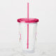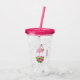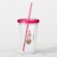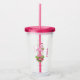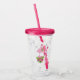 Un gobelet en acrylique avec un flamant de Noël à thème tropical portant un chapeau de Père Noël rose. Sous ses pieds se trouve un bouquet de cannes de bonbon avec de jolies fleurs tropicales et des baies roses. Un brin de houx sur sa poitrine.