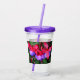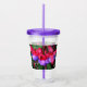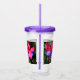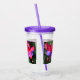 Sirotez votre boisson fraîche préférée dans ce tumeur acrylique qui présente une photo de bicolore, fleurs violettes Fuchsia avec des sépales roses imprimés à l'avant et à l'arrière. Un design fleuri et coloré ! Le tambour est livré avec couvercle et paille en plastique dans votre choix de couleur.