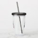Cette rondelle acrylique avec paille et couvercle a une chatte mère blanche heureuse assise avec ses trois chatons mignons qui portent tous des arcs roses autour du cou et sont noirs, blancs et gris.