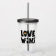 Ce design présente l'expression Love Wins avec un coeur arc-en-ciel coloré.