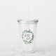 Cette mère de la mariée tumbler acrylique dispose d'une couronne d'aquarelle de verdure eucalyptus entourant le texte "Mère de la mariée" dans élégante calligraphie de style écriture au fusain gris. Cette conception est également disponible pour d'autres membres de la fête de mariage.