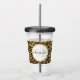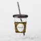 Un tumeur acrylique avec un motif élégant. Des taches de léopard noir exotique sur un arrière - plan d'or. Style sauvage mais élégant. En haut, un cadre en cercle blanc avec une fausse bordure en feuille d'or, avec votre initiale et votre nom monogramme personnalisés à l'intérieur.