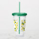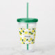 Un tumeur acrylique avec un mignon motif de citrons jaunes avec des feuilles verts et des tranches de citron fraîchement coupées. Un rectangle blanc superposé avec votre texte à l'intérieur.