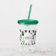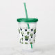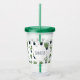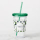 Tumbler acrylique personnalisé avec une saveur rustique occidentale. Conçu avec un tas de cactus verts mignons dans un motif extensible. Plus précisément, des cactus épineux de couleur verte, de toutes sortes de formes et de tailles, chacun assis dans son propre pot de fleurs bleu foncé. Des petits triangles décoratifs entre eux. Illustration de fantaisie.