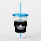 Ce tumeur acrylique avec son propre couvercle et sa paille a un noir sur un arrière - plan clair. Une seule image de couronne argentée avec des rayures blanches d'accents est à l'avant et à l'arrière. Lid et paille en bleu. Choisissez votre couvercle de couleur /jeu de paille.