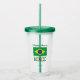 Tumbler acrylique personnalisée avec le drapeau brésilien avec le mot BRAZIL ci-dessous, dans les couleurs verte, bleue, jaune et blanche du drapeau. Ajoutez votre nom, en lettre verte, dans l'espace prévu pour une touche personnalisée. Idéal pour les réunions de famille, les groupes de voyage et les clubs. Un grand cadeau pour toute occasion.