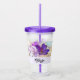 Un tumeur acrylique avec une belle photo d'un crocus violet foncé à l'intérieur d'un pot en verre. Une légère fleur violette est présente dans l'arrière - plan.
