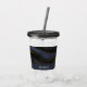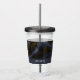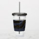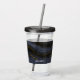 Tumbler acrylique personnalisée avec une belle image de pierre d'agate abstraite foncée. Les couleurs tourbillonnent par vagues. Les couleurs principales sont le noir, le bleu-gris avec un ruban d'or faux qui traverse la conception. Moderne et tendance.