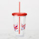 Ce tumeur acrylique avec son propre couvercle et sa paille a une image d'étoiles rouges et bleues et des serpentins astucieusement exposés sur un tumeur clair. Images des deux côtés. Lid et paille indiqués en rouge. Choisissez votre couvercle de couleur / jeu de paille.