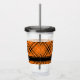 Échantillon de tartan moderne orange et noir halloween. Texte et monogramme personnalisés.