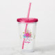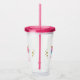 Ce tumbler présente une jolie corne de licorne et des fleurs avec des étoiles et des éléments de parties scintillant en faux or. Personnalisez-le avec un nom.