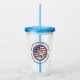 Stylish acrylic tumbler caractéristiques Pro Démocratie typographie du centre de couleur patriotique Liberty Statue graphique avec texte circulaire qui dit "Utilisez votre voix, utilisez votre vote, sauvez la démocratie et votez bleu. Arrière - plan Tan