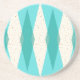 Ce Jacquard moderne Dessous de verre de grès du milieu du siècle présente un arrière - plan turquoise et dynamique et un motif de diamants turquoises translucides et mod, superposés de diamants crème vintages plus gros, aux taches d'âge spatial de couleur or. Ce Jacquard minimaliste d'inspiration et déconstruit est un retour simpliste de l'ère atomique plus grande que la vie qui a dominé le paysage décoratif des années 1950 et 1960. Ce design kitsch rappelle tout, des panneaux de bowling rétro Palm Springs aux plateaux de télévision que vous utilisiez chez votre grand-mère.