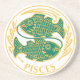 Poissons signe du zodiaque en vert et blanc sur un dessous de verre en grès.
