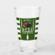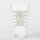 Verre à bière de fête de bachelor sur le thème du football américain vert et blanc avec des rayures, un field goal, un casque et un ballon. Personnalisez-le avec le nom du marié.