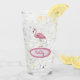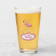 Un flamant blanc de couleur rose avec son nom encadré de rose et de plaid.