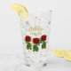 Verre Fleur rouge et feuilles verts nom personnalisé