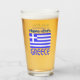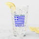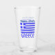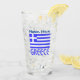 Le verre à boire personnalisé a le drapeau grec avec le mot GRÈCE ci-dessous, en bleu. Le drapeau présente des rayures bleues et blanches avec une croix bleue et blanche en haut à droite. Au-dessus, ajoutez un nom, en lettres bleues, pour un personnalisation ou créez un cadeau. Un cadeau de ménage réfléchi pour le bar à la maison. Idéal pour célébrer la Journée d'Oxi.