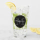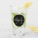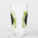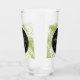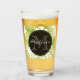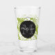 Un verre à pinte monogrammé avec un motif extensible de grands feuilles de palmiers sur un arrière - plan vert olive. Moderne tendance et tropical. Un cercle noir avec une bordure intérieure dorée superposée avec vos détails personnalisés à l'intérieur.