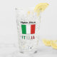 Le drapeau de l'Italie, ou en italien, Bandiera Italiana. Ci-dessous, le mot ITALIA, dans les rayures rouges, blanches et vertes de l'ol Tricolore. Ci-dessus, un endroit pour votre nom. Créez une touche personnalisée pour vous-même ou ajoutez le nom de quelqu'un d'autre pour un cadeau customisé d'un verre. Pour modifier la police ou la couleur du nom, utilisez la fonction de conception de modification.